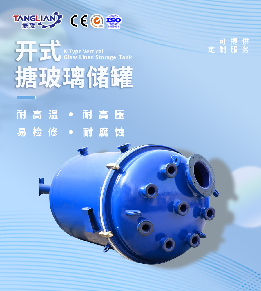 开式搪玻璃储罐(贮罐)规格:200L、300L、500L、1000L、2000L等,也可根据用户需要进行非标开式搪玻璃贮罐定做。